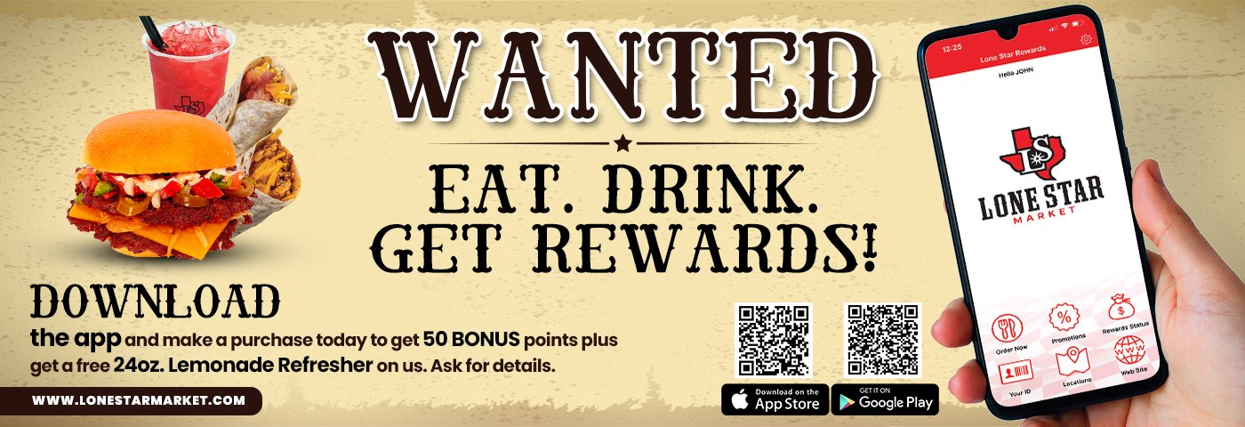 Home Welcome To The Lone Star Market Order Now STORE LOCATORServing fresh, flavorful food at all locations! Stop in for a visit and experience our fresh, made-to-order meals and drinks. Locate Store FRESH FOODWe only put the highest quality ingredients into all of our food and drinks. It’s the only way to guarantee fresh, delicious meals for you. Order Now Made to Order DrinksCrafted fresh, with only the highest quality ingredients. Every sip is made to order, every time. Order Now BREAKFAST TO GOQuick, fresh, and ready for your busy morning. Start your day right with breakfast made to go. Order Now FAMILY MEALSHearty portions made for sharing and enjoying together. Bring everyone to the table with our family-style meals. Order Now CATERINGDelicious food, perfectly catered for every occasion. From small gatherings to grand events, we bring the flavor to you. Order Now Explore the full menu From freshly-made salads to made-to-order smoothies, we have many options for health conscious customers on the go.Stop by Lone Star Market today and try our wide selection of fresh food choices. View the menu Testimonials We can’t wait to share with everyone what our happiest customers think about us! Lone Star Market is truly an amazing place. Additionally, their staff is very supportive, fast and professional.Ricardo LaneInterstate Hwy Got the cheese steak today, it was bomb! Price was $8.99. They have a friendly staff and the inside is very nice. Great lunch option.Scott SellersGulf Fwy Probably, the best restaurant in the town. providing you fresh and healthy foods. Its highly recommended.Alexa EdwardsHumble, TX Sign up and stay up to date on all the amazing offers at Lone Star Market. Subscription FormSubscribe