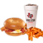 Served in or on-the-go, the taste is spot-on. To turn it into a complete meal, the combo is served with your preferred side, crunchy seasoned fries or warm spiced rice, along with an ice-cold beverage to complete the offering and refresh you. From the first bite to the last sip, this combo delivers comfort, flavor, and satisfaction that fuels your entire day. This Bacon, Egg & Cheese Bagel Combo serves up the type of breakfast joy that powers your day with taste and satisfaction. No fuss, just great food done right, the Lone Star Market way.